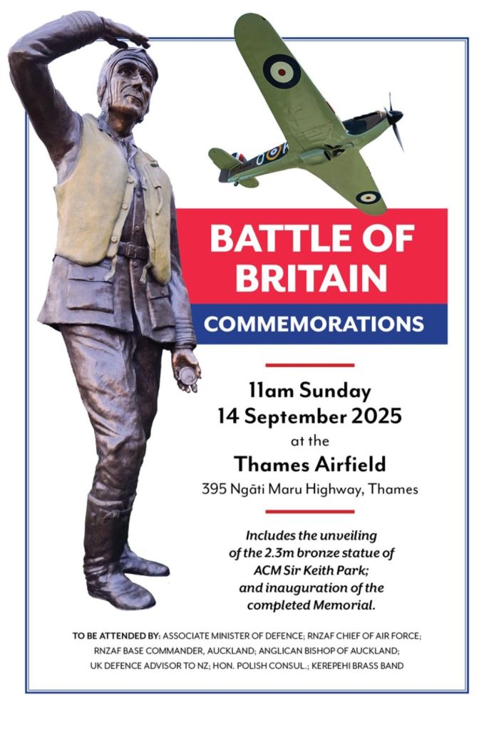 This event is open to the public and will include the unveiling of the 2.3m bronze statue of Sir Keith Park and the inauguration of the completed memorial.